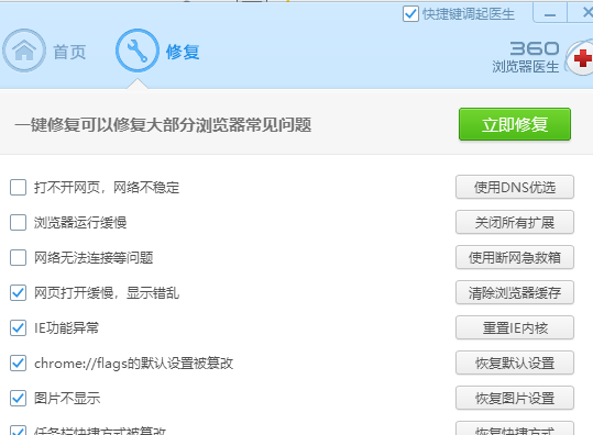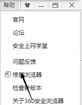 6.【大部分这个原因】修复浏览器,现在大部分人都有用的其它厂家的浏览器,用系统自带浏览器较少,什么百度浏览器,QQ浏览器,猎豹浏览器,UC浏览器,等等都是用的谷歌浏览器内核,有问题都差不多,以我360安全浏览器为例点击下方修复浏览器,即可解决大部分问题。