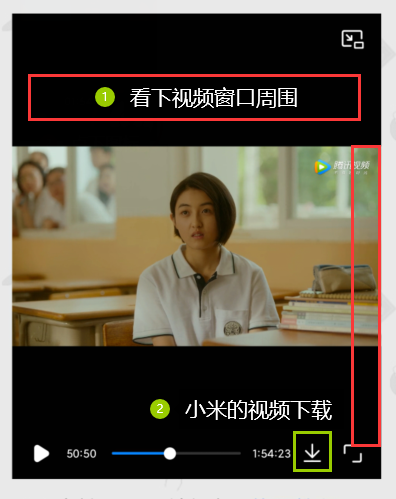 有些品牌的浏览器下载功能在菜单栏,更多的是附属在视频框的周围,比如小米