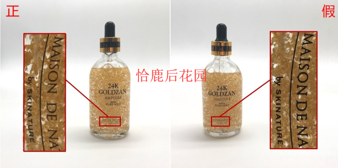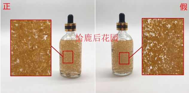 其实精华中金箔量的对比挺明显的,正品金箔要比假货密集很多但是拍出来的图片中就看不太清晰了大家如果买到精华液中金箔含量比较少的,或者有其他疑问的都可以拍照给园长帮忙辨别一下哦!